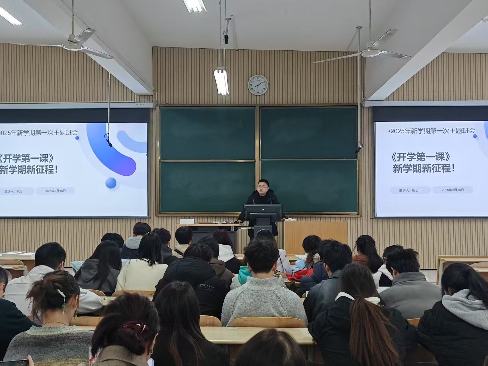 总结学业成果,锚定奋斗方向。班会上,各辅导员对上学期期末成绩进行了分析,通报了学业成绩排名前10的学生。充分肯定了同学们在学业、科研和实践活动中取得的优异成绩,并对新学期的班级建设提出了明确目标。辅导员鼓励同学们结合本专业,本领域的发展趋势,制定个人学业规划,树立科研创新意识,积极参与学科竞赛和科研项目,将理论与实践相结合,为未来的职业发展夯实基础。