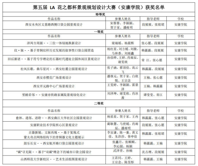 附表:第五届LA花之都杯景观规划设计大赛(best365中国官方网站)获奖名单
