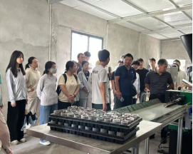 在蔬菜工厂化育苗中心,同学们进一步感受到了现代农业的科学化、机械化和自动化。它打破了传统育苗受季节、气候和土壤等自然条件的限制,实现了蔬菜种苗的周年生产和均衡供应。工作人员指着正在培育的辣椒苗介绍到,工厂内可以精确调控温度、湿度、光照、CO2浓度等环境,为辣椒苗创造最佳生长条件,加快辣椒苗生长速度、缩短育苗周期、提高产量。