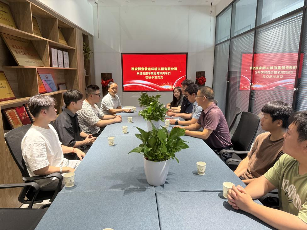 团队先后走进陕西唐景园林集团有限公司、西安博意景道环境工程有限公司、西安鼎泰兴农有限公司及陕西中科伟业科技集团有限公司。每到一处,师生深入企业项目现场与办公环境,直观感受企业文化与工作实景。座谈会上,企业负责人详细介绍了发展现状、核心业务及人才需求,双方就园林行业发展前沿、校企协同育人、实习基地共建及毕业生招聘等议题展开务实探讨。多家企业现场向学生发出实习邀约,并提供了针对性的就业岗位信息