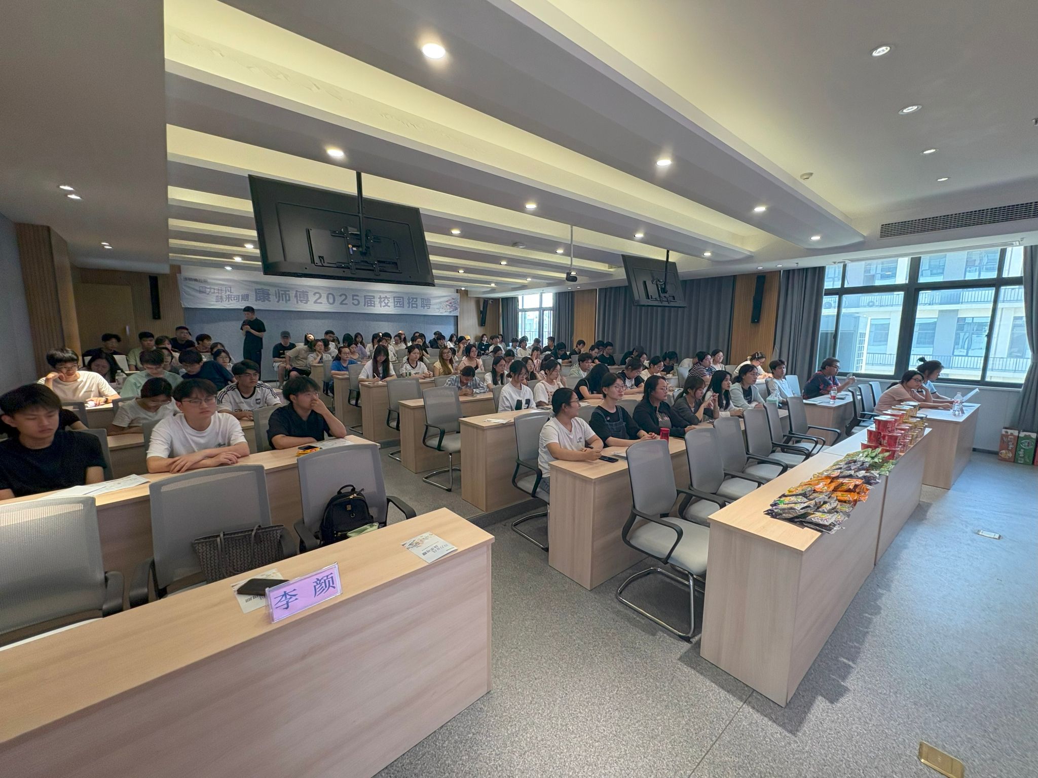 宣讲会上,西安顶益食品有限公司人力资源处李颜处长以自身丰富的人资经验和大公司用人的视角,结合理论模型和实践案例,从“企业招聘什么样的人?”、“面试是如何进行的?”、“如何成为面霸?”三个方面给学生讲授了一堂生动的《面试实用技巧》课程。课程深入浅出,内容丰富,实用性强,为学生面试提供了指南,增强了学生求职技巧和信心。