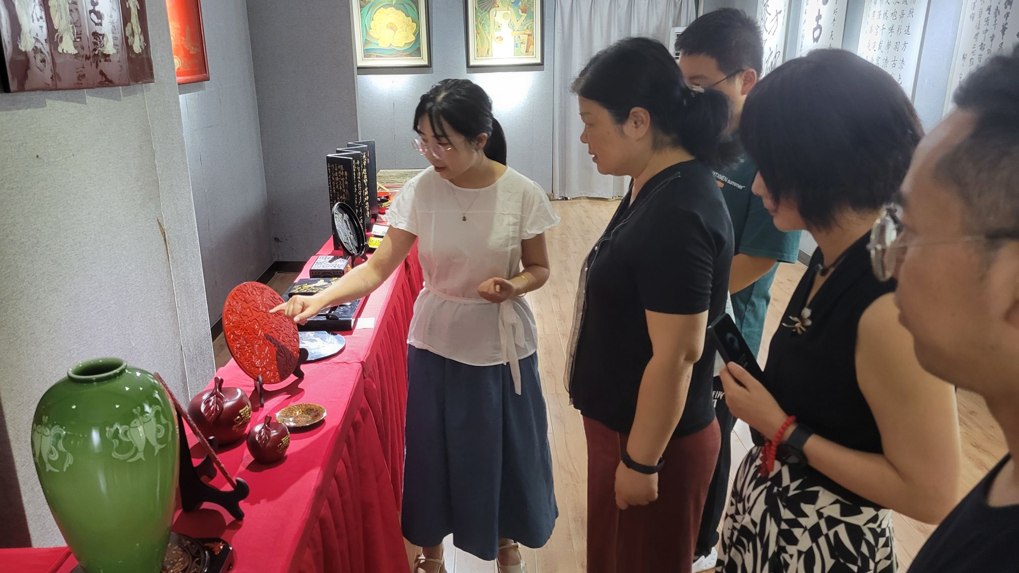 近日,学院组织教工一支部教师代表和优秀班团干部一行,于艺术楼二楼展厅开展漆器工艺品专题参观活动。艺术学院教师全程陪同并做深入解读,best365官网师生共赴一场漆艺文化的视觉盛宴。