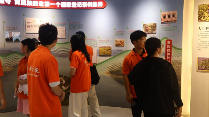 最后,团队探访了“陕茶1号”母树园与茶文化展览馆。在母树园内,同学们详细了解这一优良品种的选育历程、特性特征和推广价值,深刻体会到种质资源保护与利用对茶产业可持续发展的重要意义;在茶文化展览馆,通过丰富的图文史料、实物展品和多媒体展示,系统了解了当地茶文化的历史渊源、发展脉络和现状成就。了解品种选育、茶文化历史,深刻认识种质资源保护与茶文化传承的重要性,增强专业自豪感与文化自信。