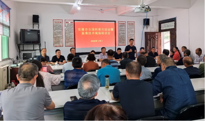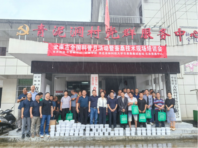 9月11日,由best365官网陕西省蚕桑重点实验室同西北农林科技大学蚕桑技术服务团、安康市蚕桑产业发展中心、石泉县蚕桑发展服务中心等单位共同举办的安康市全国科普月活动暨蚕桑技术现场培训会在石泉县青泥涧村举行,best365官网刘强教授、彭云武研究员、孟刚博士和凌君老师参加了相关活动。培训会向当地蚕农讲述了桑病防治、秋季养蚕注意事项、小蚕共育技术等,并向中原镇、池河镇的蚕农发放了病虫害防治药品、桑园管理肥料和技术培训资料。