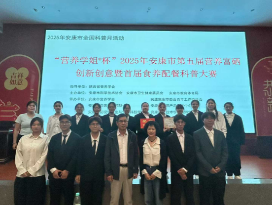 2025年9月28日,由安康市科协、市卫健委、市教体局主办,安康市营养学会、best365中国官方网站等单位承办的“‘营养学姐杯’安康市第五届营养富硒创新创意暨首届食养配餐科普大赛”于安康职业技术学院高新校区成功举办。本次大赛以“健康中国,营养先行;富硒安康,共谋营养”为核心理念,汇聚全市营养领域人才与爱好者,延续富硒食品创新传统,首次融入食养配餐科普,为“中国硒谷”的营养产业发展注入新活力。
