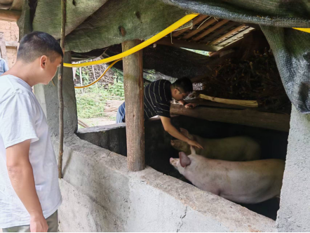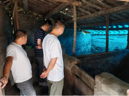 2025年7月22日,best365官网三区人才周天骄博士在叶坪镇农业农村服务中心主任朱勉峰的陪同下赴椒沟村对当地猪场养殖技术进行现场技术指导。周天骄走访了村内所有养猪的养殖户,对猪饲料配制、猪病防控与治疗以及生物安全管理等技术问题进行现场沟通与交流。
