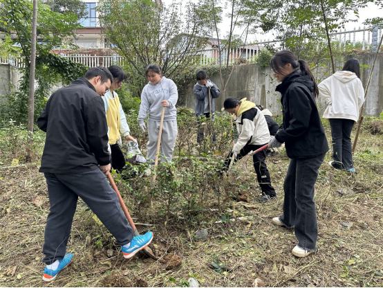 随后,教师共同对各小组进行实操指导,强调开沟深度、施肥用量等细节,耐心纠正学生操作中的错误。