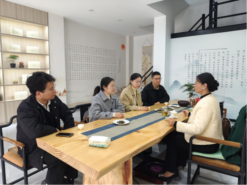 调研期间,一行深入企业生产车间,通过实地察看、现场交流与审评品鉴,针对未被充分利用的茶树花资源,从茶花采摘、杀青、干燥到成品贮藏全过程进行了细致的技术诊断,为企业开发具有蜜香风味的创新型茶树花茶产品提供了新思路,助力产品多元化开发。