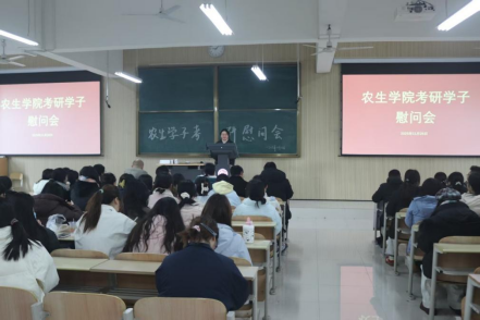 2026 年全国硕士研究生招生考试临近,11 月 26 日,best365中国官方网站于 1201 教室举行 2026 届考研学子慰问活动。活动由学生党支部书记邓子序主持,best365中国官方网站党总支书记孙保本、副院长李川、党总支副书记沙薇、副院长张丽琼、党政办主任王中兴、团总支书记郭杨娟、园林系系主任段展展、食品系系主任梁如、生物技术系系主任许连光、茶学系教师吴冲、农学系教师何斐,以及部分考研学子参加了本次活动。