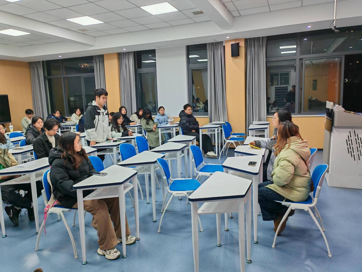 互动环节中,2024级同学们围绕专业学习重点、职业发展规划、创业初期瓶颈突破等问题踊跃提问,两位校友结合自身经历逐一细致解答,现场氛围热烈,掌声持续不断,同学们纷纷表示收获颇丰、深受启发。