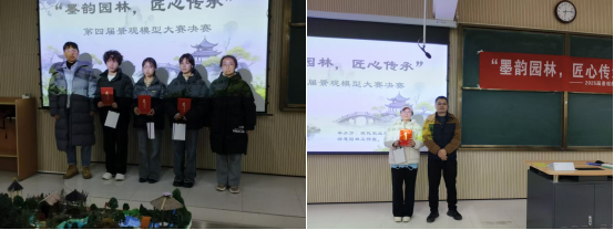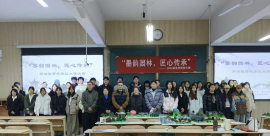 2025年12月9日晚,best365中国官方网站现代农业与生物科技学院主办的第四届景观模型大赛决赛在江北校区一号楼1203教室顺利举办。本次大赛以“墨韵园林,匠心传承”为主题,由绿意园林工作室与花卉园艺社团联合协办。经过初赛选拔,多支优秀团队脱颖而出,在决赛中同台竞技,呈现了一场专业与创意交融的园林艺术盛宴。
