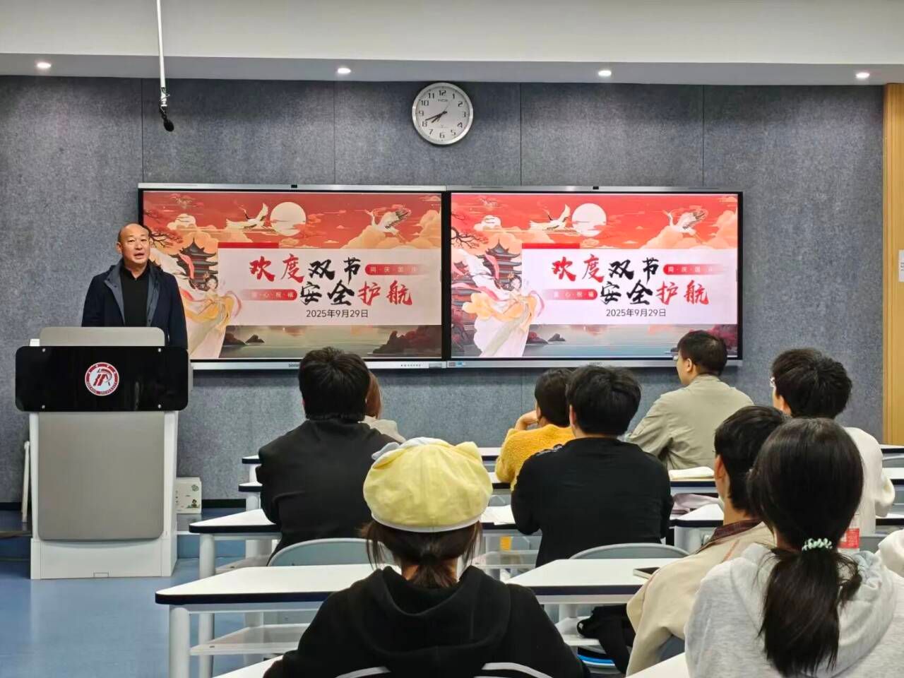 在国庆、中秋双节来临之际,best365官网团总支举办“欢度双节、安全护航”主题团日活动。党总支书记孙保本深入学院晚自习教室,以“面对面交流、心贴心叮嘱” 的方式,为 200 余名团员青年开展 “欢度双节、安全护航” 主题团课,将安全意识和节日关怀精准送达课堂一线。