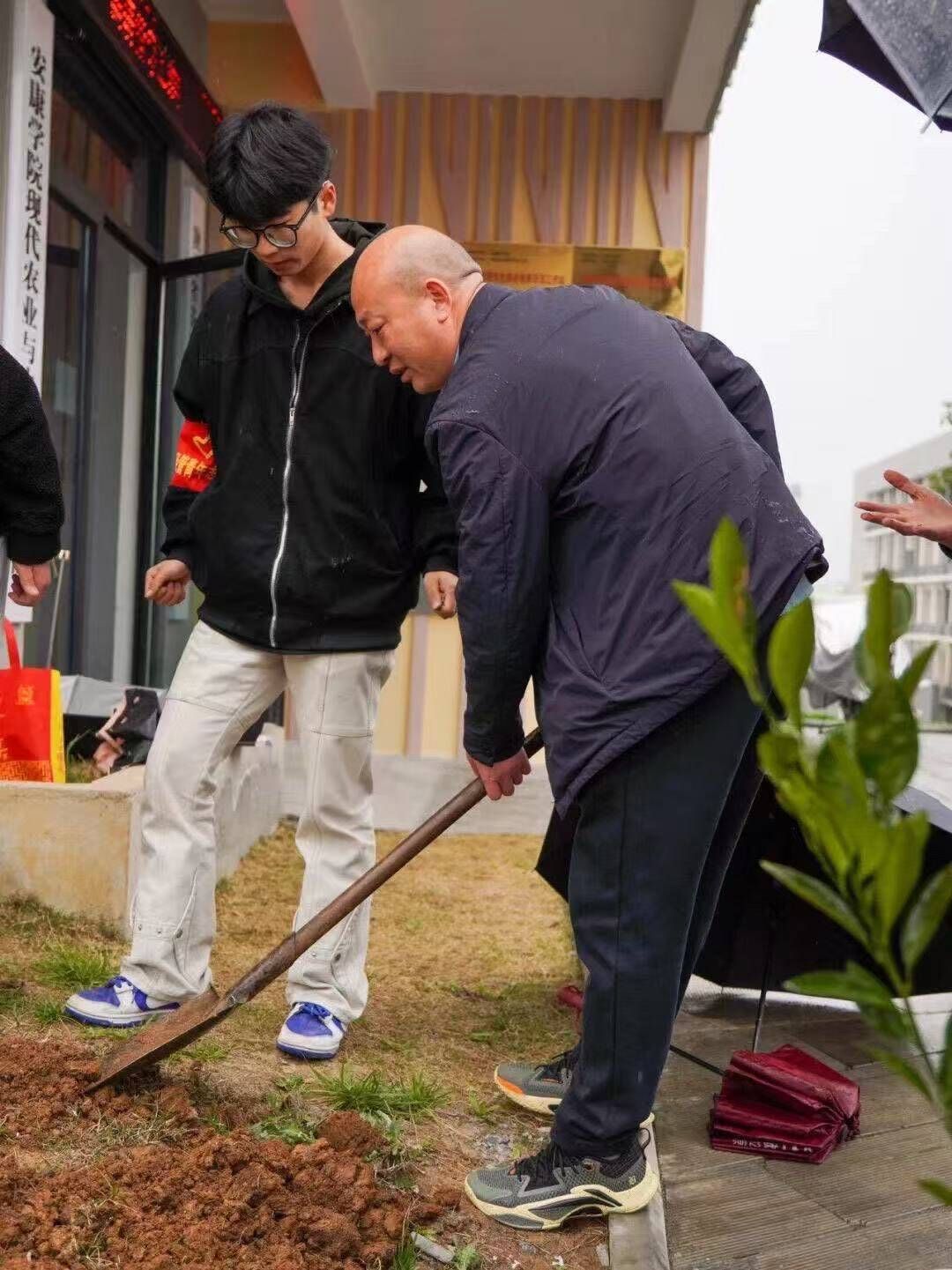 植树现场,同学们迅速分组协作,有条不紊地完成挖坑、扶苗、培土、浇水等工序。党总支书记深入学生队伍中,与大家一同栽种苗木,不时与同学们交流苗木养护知识,询问专业学习情况,并寄语青年学子:“每一株树苗的扎根生长,都离不开深耕细作;每一位农科学子的成长成才,都需要脚踏实地。要把植树护绿的劳动精神、雷锋同志的奉献精神融入专业学习,在服务‘三农’、振兴乡村的征程中向下扎根、向上生长。”经过近两个小时的辛勤劳作,百余株树苗整齐排列、迎风挺立,为校园增添了一抹生机盎然的新绿。