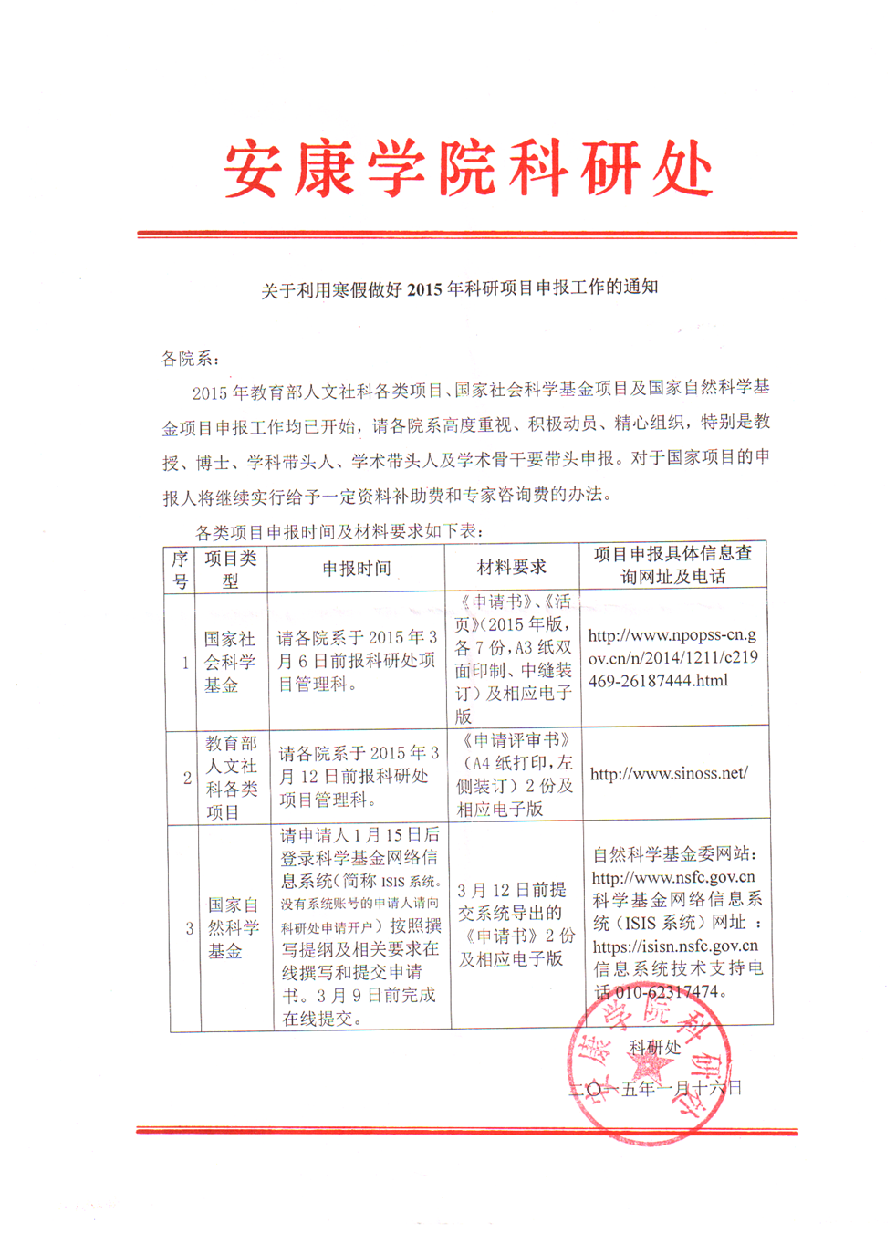 关于科研处下发寒假做好2015年科研项目申报的通知