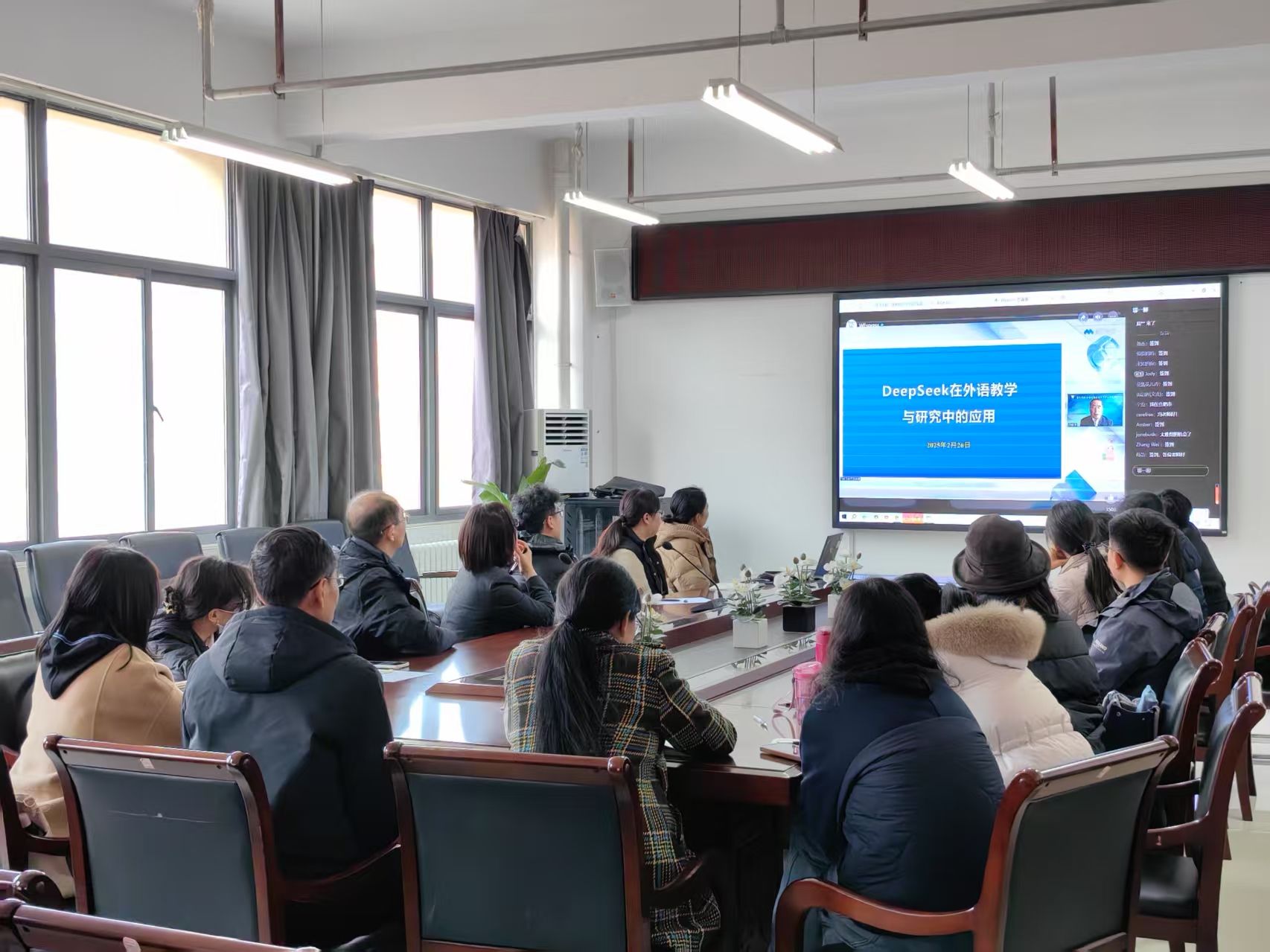 2 月 26 日下午,3003新葡官方网站组织教师集体观看了上海外国语大学冯庆华教授题为 “Deep Seek 在外语教学与研究中的应用” 的直播学术讲座。此次讲座是学院推动教学数字化转型的重要活动之一,旨在助力教师深入探寻人工智能技术在外语教学与研究领域的前沿应用,开拓智能化教学新路径。