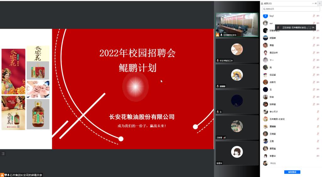 5月31日下午,长安花粮油股份有限公司利用腾讯会议举办线上招聘宣讲会,best365官网50余名毕业生参会,会议由公司人事专员赵彦主讲。