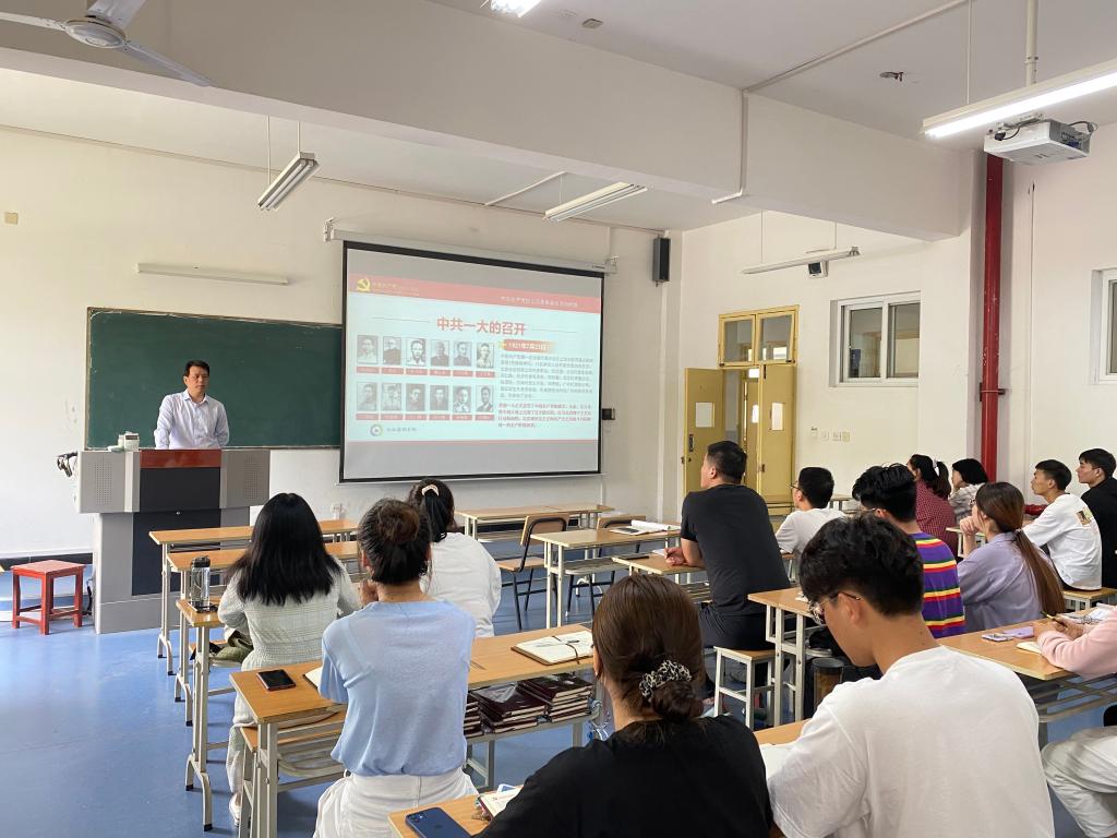 为深入开展党史学习教育,引导广大党员学党史、悟思想、办实事、开新局,5月26日下午,best365中国官方网站党总支书记张纪生以“学习百年党史,践行初心使命”为主题,为学生党支部全体党员讲了一堂生动的党课。学生党支部全体正式党员、预备党员和发展对象聆听了党课。