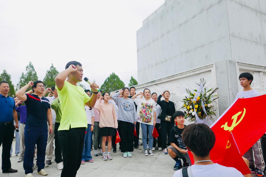 青山依旧,英烈不朽。面对鲜红的党旗,12名学生预备党员及全体师生党员庄严宣誓重温了入党誓词。
