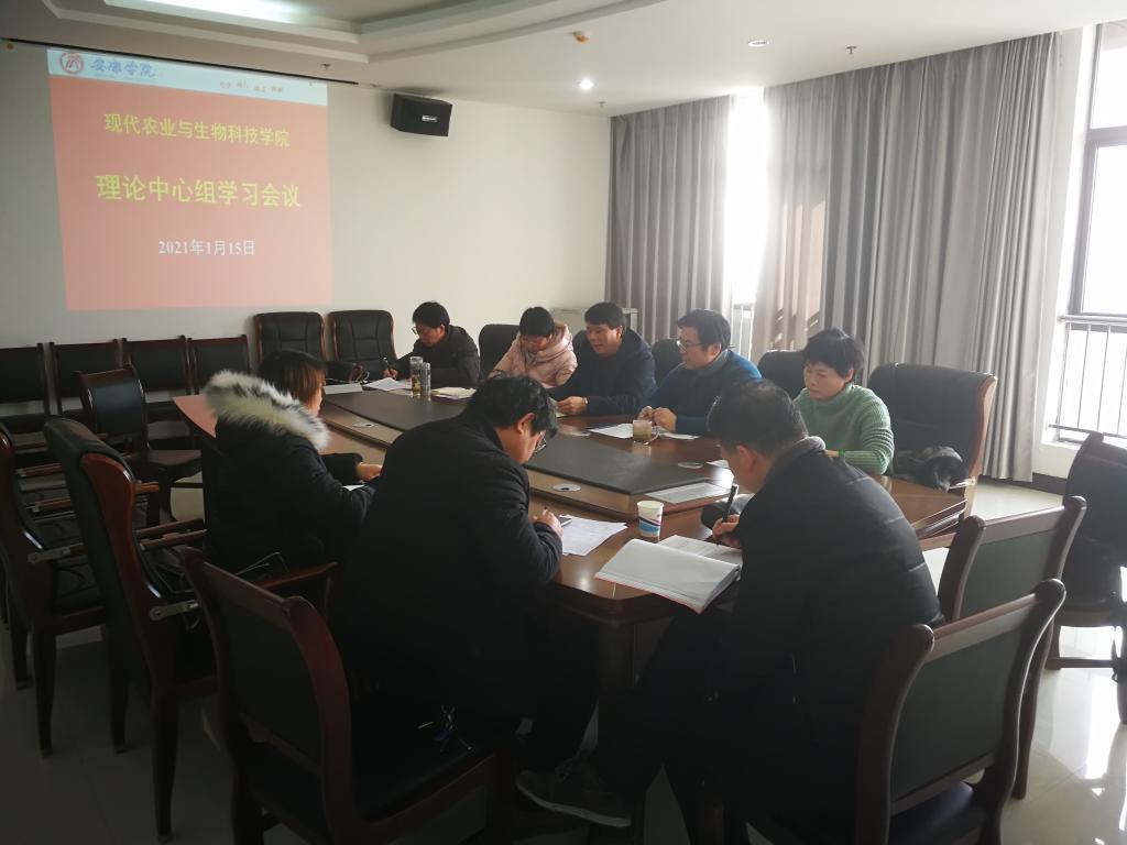 1月15日上午,农生学院理论学习中心组在江北逸夫科技楼九楼小会议室召开政治理论学习会议。中心组全体成员参加了学习,党总支书记张纪生主持会议。