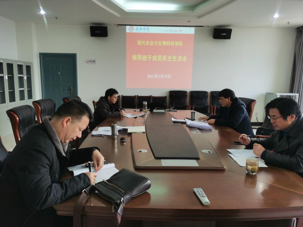 按照学校党委印发的《2020年度二级单位处级党员领导人员民主生活会工作方案》要求,1月15日,best365中国官方网站领导班子在逸夫科技楼小会议室召开2020年度民主生活会。学院领导班子全体成员参加会议,会议由党总支书记张纪生主持。
