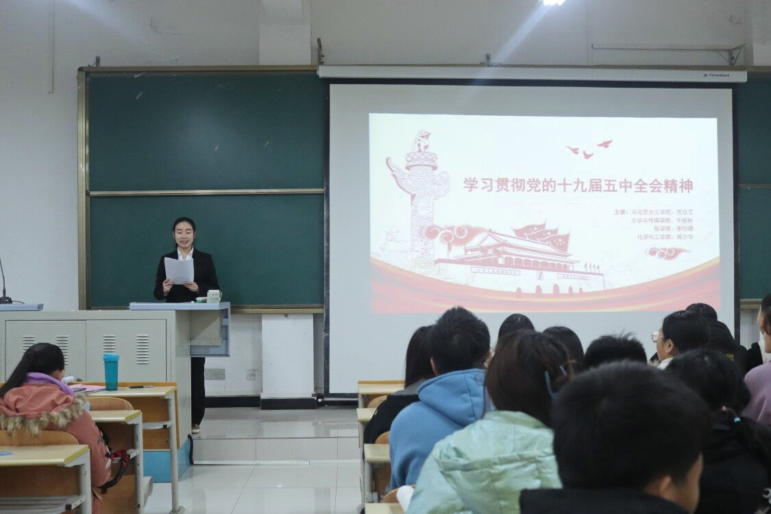 此次宣讲会,学生们讲参与、说成就、谈变化、话感受,在全校掀起学习党的十九届五中全会精神的热潮。