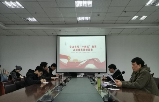 会上,张纪生组织全院教职工认真学习了教育部发展规划司党支部书记、司长刘昌亚关于贯彻党的十九届五中全会精神笔谈《奋力书写“十四五”教育高质量发展新篇章》。他强调,全体教职工要自觉深入学习贯彻十九届五中全会精神,深刻认识、准确把握核心要义。面对新时代新发展新要求,要始终坚持不忘教育初心,牢记教育使命,以习近平新时代中国特色社会主义思想为指导,培养担当民族复兴大任的时代新人,为实现中华民族伟大复兴中国梦作出更大贡献。