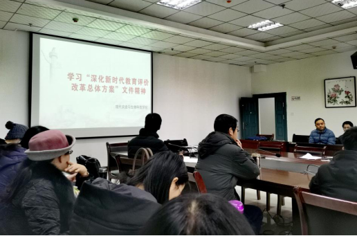 院长、党总支副书记王健通过宣讲的形式给全体教职工上了一堂生动的党课,传达了中共中央、国务院印发的《深化新时代教育评价改革总体方案》,详细讲解了方案出台的背景、基本定位、主要内容和目的意义,重点对改进高等学校评价、改革教师评价、改革学生评价、改革用人评价等内容进行了解读。随后,王健结合学院实际工作谈学习《总体方案》心得体会,他认为《总体方案》是我国教育评价纲领性文件,把立德树人成效作为根本标准,体现了对学校办学观、教师职业追求和个人成长、学生成长发展的价值引领,充分展现了评价导向性价值。他强调,全体党员要加强对《总体方案》的学习,深刻领会其精神实质,进一步改进工作方法,提升工作水平。