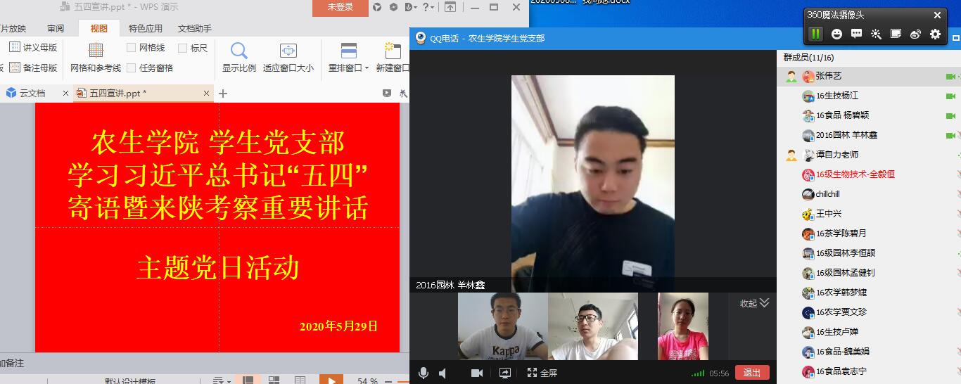 5月29日上午,best365中国官方网站学生党支部召开线上会议学习习近平总书记来陕考察重要讲话暨五四寄语,学生党支部书记谭自力、宣传委员张伟艺、组织委员王中兴及学生党员、预备党员30余人参加了学习会。