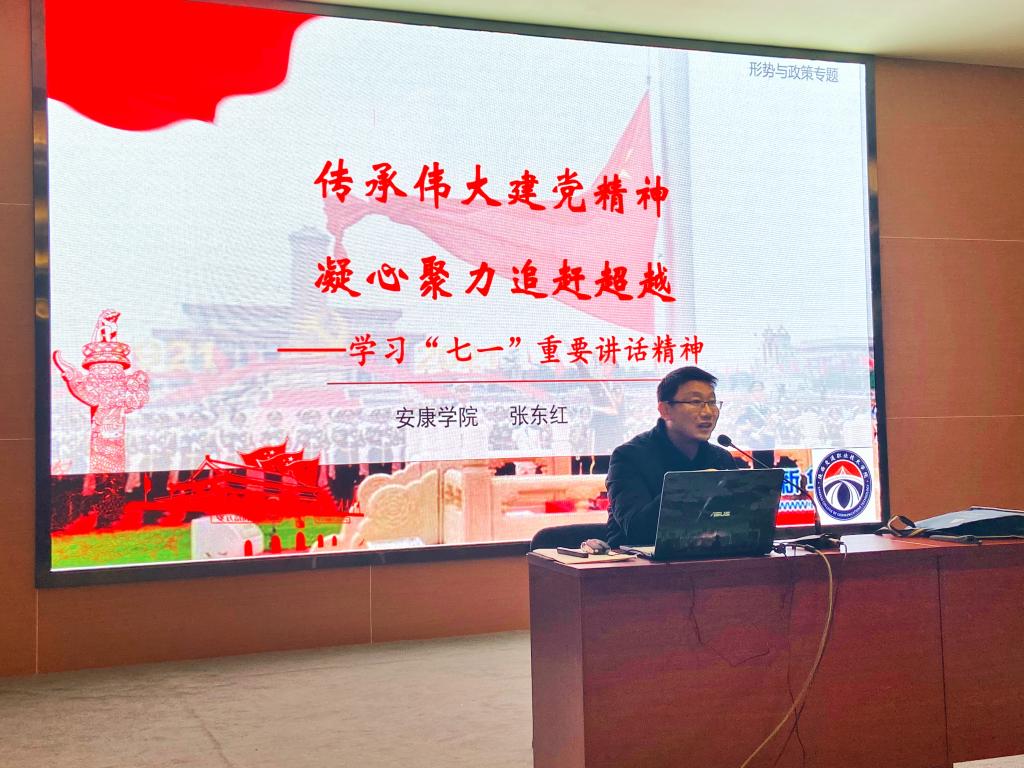 12月2日下午,学校党委委员、副校长张东红教授在江北图书馆报告厅为best365中国官方网站学生讲述“传承伟大建党精神 凝心聚力追赶超越——学习‘七一重要讲话精神”形势政策专题课。best365官网辅导员、学生干部、新生代表200余人聆听,专题课由best365中国官方网站办公室主任王中兴主持。