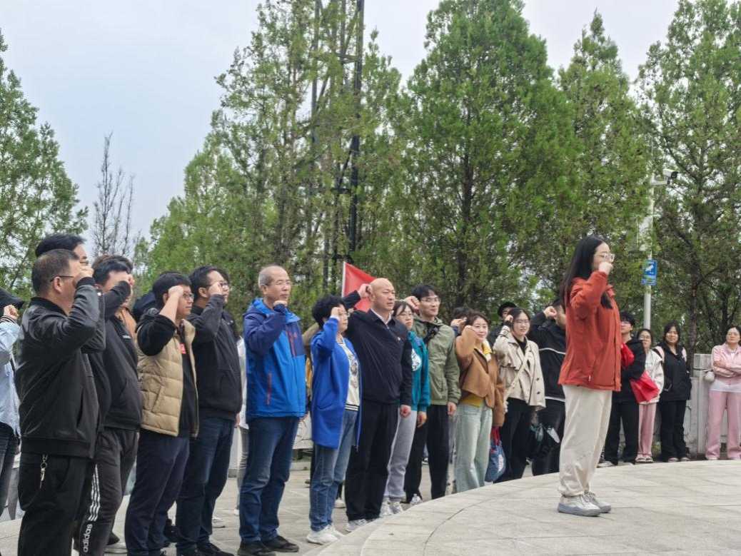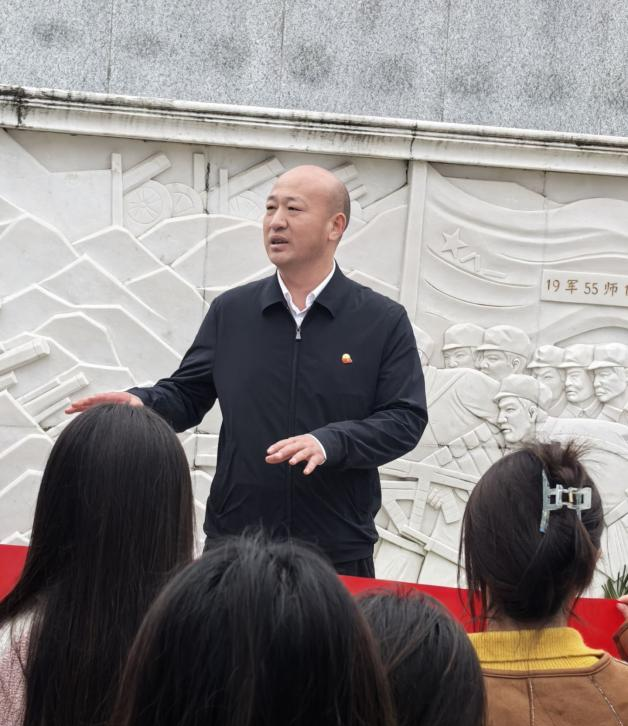 在瞻仰结束后,孙保本为师生党员们上了一堂别开生面的党课,从党日活动的主题切入,缅怀革命先烈们的丰功伟绩,学习他们不怕困难、甘于牺牲、敢于斗争的革命精神,激励各位党员同志要铭记历史,崇尚英雄,尊重英雄,争做英雄;在学校迎接本科教育教学评估的关键节点上,充分发挥“两个作用”,立足岗位,敬业奉献,勇建新功。全体党员在学生党支部书记邓子序老师的带领下重温了入党誓词。