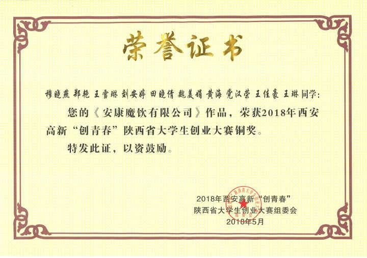 2018年5月西安高新“创青春”陕西省大学生创业大赛铜奖