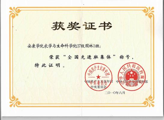 农学与生命科学学院07级园林班自入校以来,就秉承学校“笃学、尚行、励志、创新”的校训,围绕“成长、成人、成才和发展的”人才培养理念,形成了“健康、慎思、笃行、创新”的优良班风,在科技活动、社会实践、校园文化建设、服务地方经济建设等方面取得了突出的成绩,于2010年5月被共青团中央、教育部授予“全国先进班集体”荣誉称号。