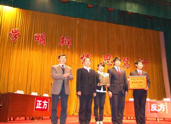 2、辩论赛,2010、2011年连续两年获得大学生辩论赛-谁是英雄(金雀杯)冠军。