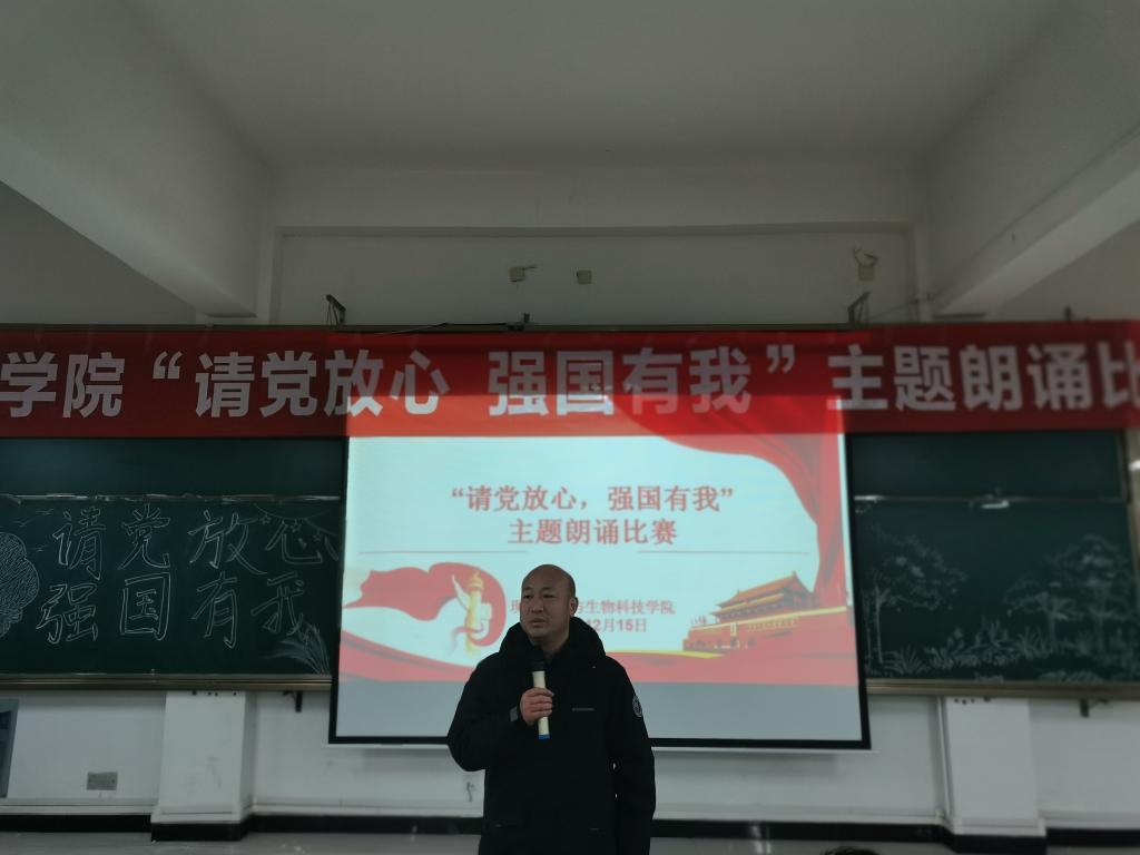 为深入学习贯彻习近平总书记“七一”重要讲话精神,践行“请党放心,强国有我”的青春誓言,12月15日,best365中国官方网站“请党放心,强国有我”主题朗诵比赛在1304教室隆重举行,学院党总支书记孙保本,学工办主任谭自力,团总支书记张伟艺,辅导员金清民、杨曼及200余名学生参加。