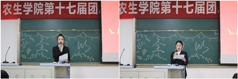 第十六届学生分会执行主席门兴、团总支副书记徐婷对一年来团总支学生分会工作情况进行了总结,交流了工作上的好的做法并勉励新一届学生会干部发扬农生精神,再接再厉,奋发有为。